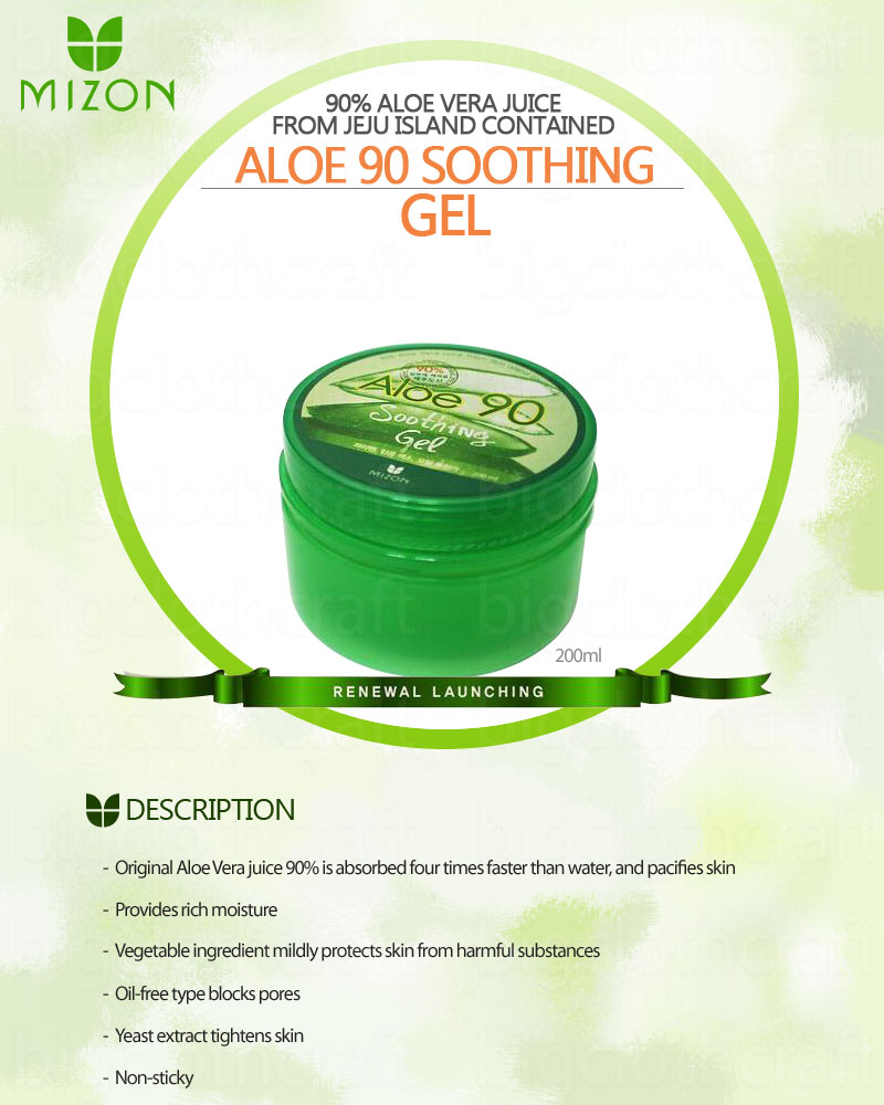 Mizon Aloe 90 Soothing Gel 90% Aloe Vera Juice from Jeju Contained 200ml