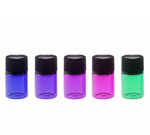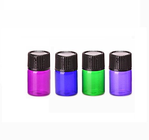 30 Packs Mini 2ml(5/8 dram) Colorful Glass Essential Oil Bottles Empty Travel Perfume Cosmetic Liquid Sample Vials Container With Orifice Reducer and...