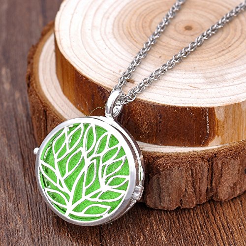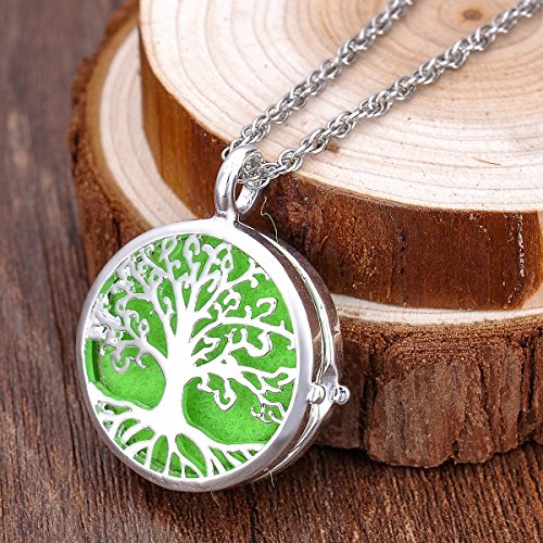 HOUSWEETY Aromatherapy Essential Oil Diffuser Necklace-Copper Tree of Life Locket Pendant,12 Refill Pads