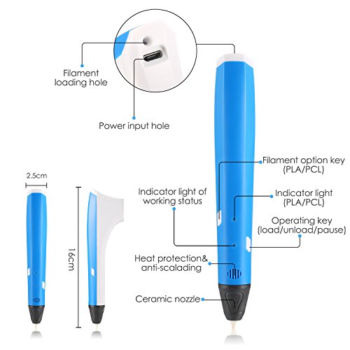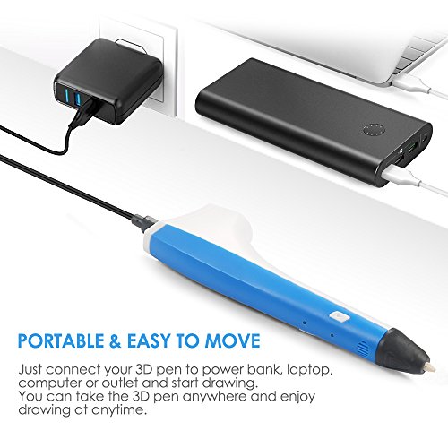 - 【EXQUISITE DESIGN】: It’s light and portable. Just connect your 3D pen to power bank, laptop, computer or outlet, so you can take it in anywhere and enjoy drawing at anytime. Streamline design make you have a comfortable grab feel. It has a replaceable screwed nozzle which is easy to clean up and maintain.