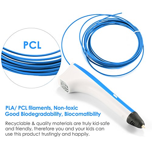 - 【SAFE & HIGH QUALITY】: PLA/ PCL filaments, with good biodegradability, biocomatibility and non-toxic. Recyclable & quality materials are truly kid-safe and friendly. Our product includes two Anti-scald Finger Guard and the pen tip can be controlled in low temperature.ONE-YEAR WARRANTY!