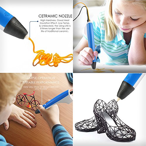 - 【SIMPLE OPERATION & STABLE PERFORMANCE】: It’s easy to use with one button operation. Because of the Ceramic Nozzle, filament is extruded smooth, not easy to plug. You can create a object with uniform and bright color.