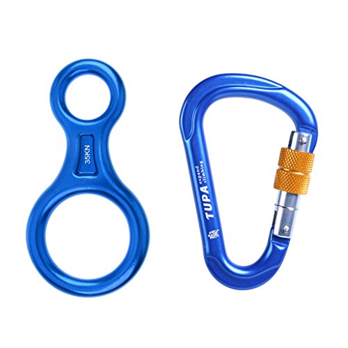 Description: 35KN Figure 8 design belay device and 25KN D-Shape screw locking climbing carabiner The carabiner with non slip screw nut, more safety Fast and easy loading other belay/descender equipment Firm and durable, lightweight and portable to carry Fit for rock climbing, mountaineering, rappelling, caving, exploring, rescue, engineering protection, aerial work etc Specification: Material: Aluminium Magnesium Alloy Color: Blue Figure 8 Belay Device: Offers a smooth rappel with minimal impact on the rope Tension: 35KN Size (LxW): Approx. 14.4x7.4 cm/5.67x2.91 inch Large ring inner diameter: Approx. 5.2 cm/2.05 inch Small ring inner diameter: Approx. 2.6cm/1.02 inch Suitable Rope: for rope diameters 8-12 mm/0.31-0.47 inch