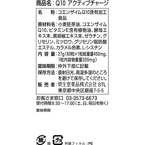 원본상품명: 資生堂 Q10アクティブチャ?ジ 60粒 約30日分