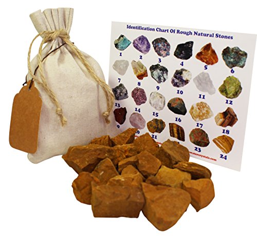 -. Feature : 1 Lb / .50 Kg Of Rough Natural Semi Precious Mineral Gemstones / Includes Natural Linen Jute Drawstring Storage Bag & Tag For You To Label As You Choose / Includes Stone Identification Chart (Translated to German, French, Italian & Spanish) / Stone Sizes Typically Range Between 1-2 inches (25-50 mm) / Another Rockin' Product Offered By Blue Water Crystals & Gemstones
