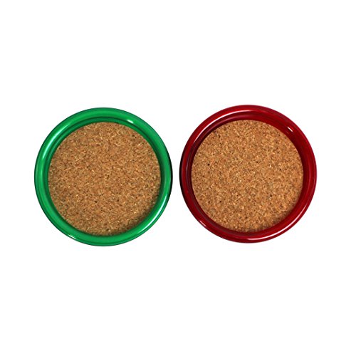 -. Title : Gessner Thirsty Christmas Coasters With Cork Centers - Green And Red - 12 Coasters