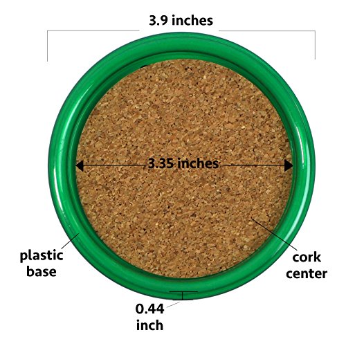 -. Feature : Plastic Coasters With Cork Center / Approximately 4 Inch Diameter / 6 Red And 6 Green Coasters