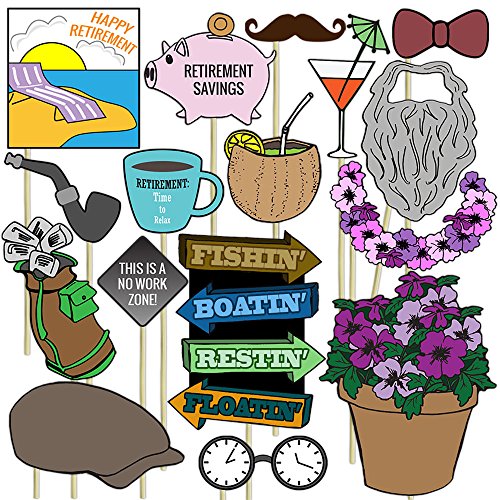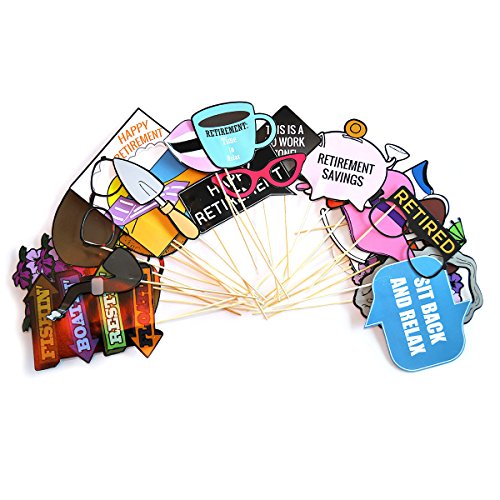 Retirement Photo Props (32 Pieces) for Photo Booths, Retirement Parties and More! Our Retirement Photo Prop Party Favors are Pre-Made (Not DIY) for Your Convenience!