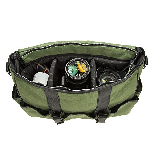 -. Brand : Lencca -. ClothingSize : Medium -. Color : Forest Green -. Department : mens -. EAN : 8907198957173 -. Feature : Designed to help photographers blend in with the crowd in any situation. Constructed with high quality water repellent canvas / 2 side and 3 front pockets on the exterior. One zippered pocket, 2 side pockets, and a dedicated key holder inside the main compartment. Top zipper to have quick and easy access to your gear / Front zipper compartment. Wide opening for unencumbered access to your gear. Padded adjustable shoulder strap for all day comfort. Rear compartment for notebooks or laptops (up to 15in) / Buckle straps designed to carry your tripod or monopod. Lencca branded zipper pulls / Strap: 65.5in (166.37cm). Exterior Dimensions: 17in W x 6.5in L x 11.75in H. Interior Dimensions: 16in W x 5.5in L x 11.25in H -. Model : Canon Camma -. MPN : LYSB01MDSAMGB-OFFSUPPLIES -. PartNumber : LYSB01MDSAMGB-OFFSUPPLIES -. ProductGroup : Apparel -. ProductTypeName : LAGE -. Size : Medium -. Title : Messenger Bag Camera Case 4 Fujifirm Instant SLR Professional Mirrorless Cameras