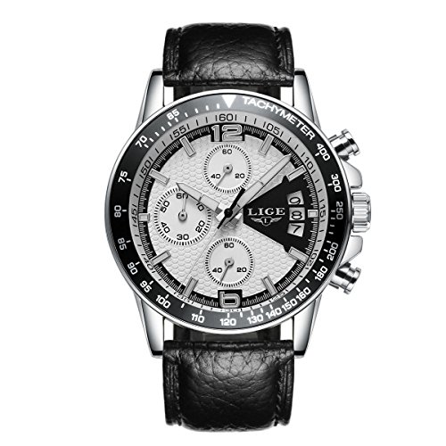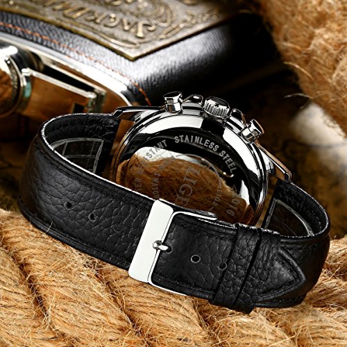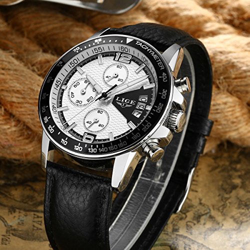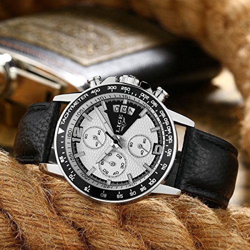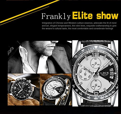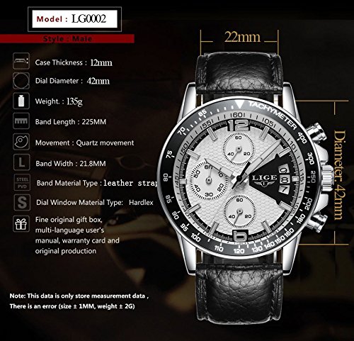 * Black Comfortable Leather watchband and alloy case with adjustable buckle, no any hurt of your clothes or hands