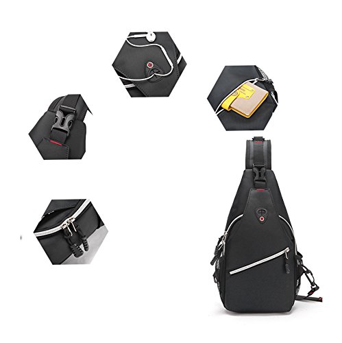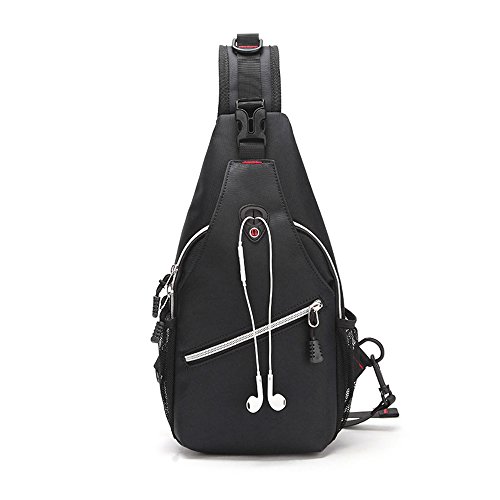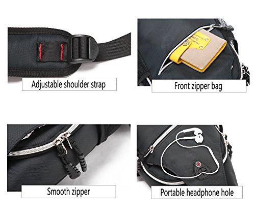 -. Feature : Multiple Storage: This sling shoulder bag designed with three compartments. Main pocket can hold your iPad Mini wallet, power bank, small camera. Middle pocket for your small notebook, map. The front pocket is perfect for your phones, wired headset, cards, small change. / Comfortable to Wear: Can be used both as chest pack and shoulder bag, messenger bag, travel bag; Satchel strap is adjustable,fit both regular and plus-size person.With this dual d buttons,Both left and right, would be so comfortable to wear. / Durable and Portable: The sling shoulder bag made from high quality tear-resistant and water-resistant oxford,durable and lightweight, also comfortable to wear. / Convenient: This sling chest bag designed with earphone hole and two-way zippers is convenient to use,when you are running or cycling,you can listen to music with the crossbody backpack,the earphone hole design make you relexing. / Fall In Love: Multipurpose perfectly works as men womens wallet purse, shoulder bag, chest pack, travel bag, outdoor sports bag,perfectly for hiking, camping, climbing, cycling, walking, etc in casual daily life.