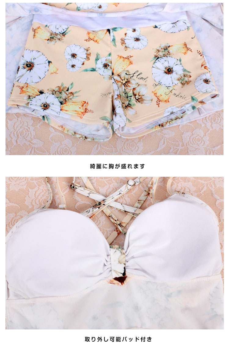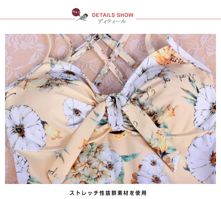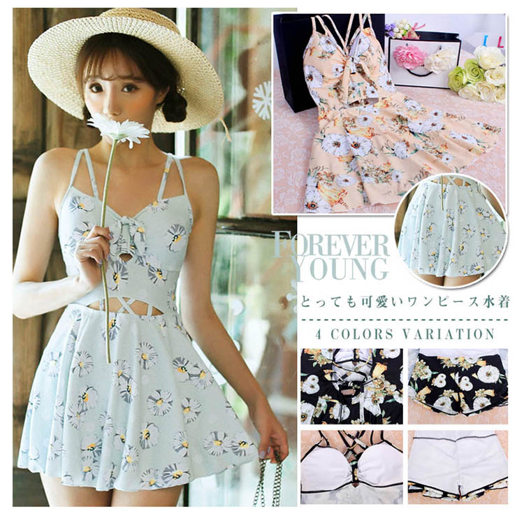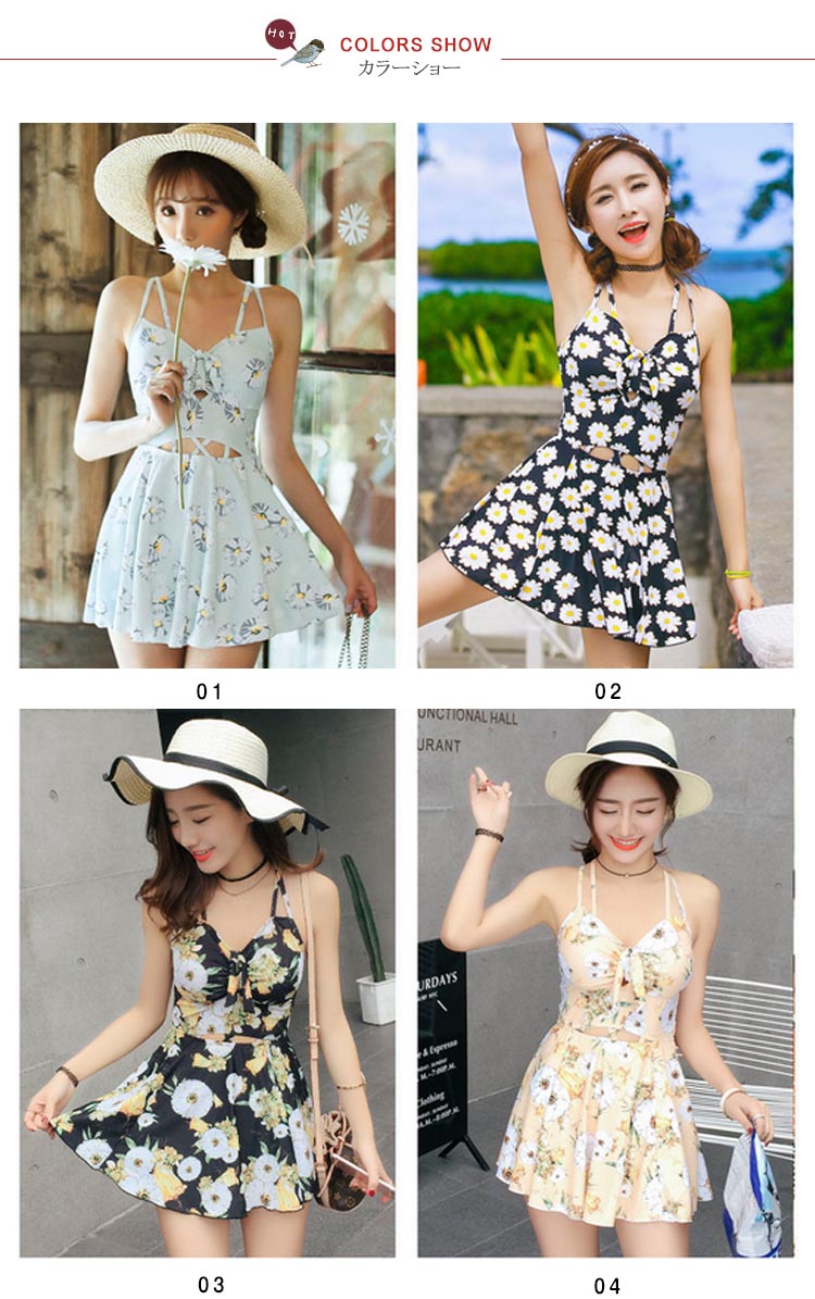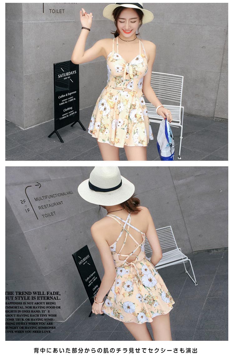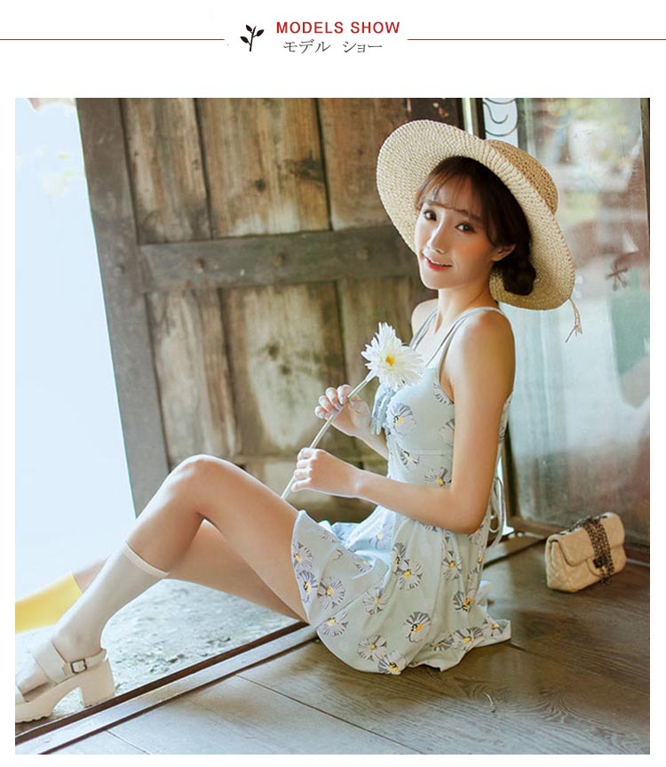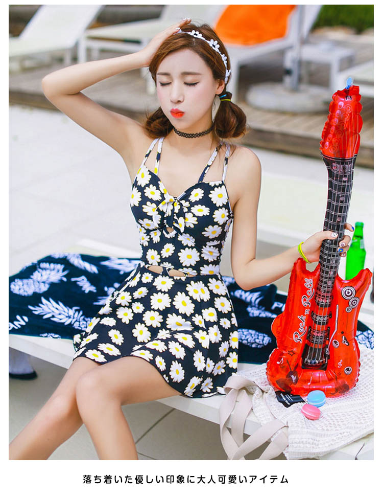 | とっても可愛いワンピース水着背中にあいた部分からの肌のチラ見せでセクシーさも演出一体型ワンピース水着で脱ぎ着が楽 落ち着いた優しい印象に大人可愛いアイテム | |