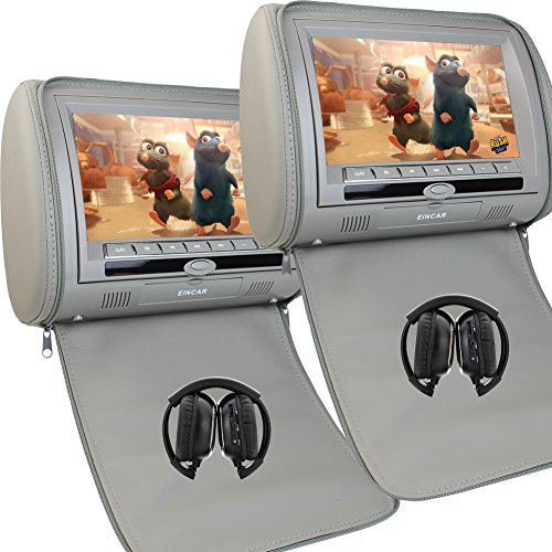 -. Title : 2 PCS Headsets+ Dual Twin Screen DVD Player Grey Color Pair of Headrest 9'' LCD Car Pillow Monitors Support 32 Bit Games with Video Games Controllers