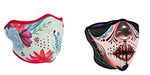 -. Feature : This Product is a 'Bundle' of 2 Neoprene Face Masks identified as a 'Watercolor Flowers' and a 'Sugar Skull' / The First Facemask is the ZanHeadgear 'Watercolor Flowers' Half Face Neoprene Face Mask / The Second Facemask is the ZanHeadgear 'Sugar Skull' Half Face Neoprene Face Mask / These Face Masks / Ski Mask are made of Durable, Naturally Warm & Water Resistant Neoprene Face Mask Material / The Mask Sizes are adjustable, by up to 2 inches, using the Hook & Loop closure, located at the back of the head