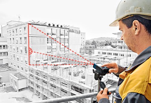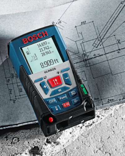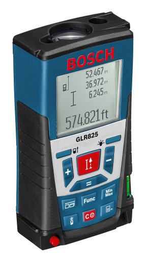 The Bosch Laser Distance Measurer incorporates precision laser measuring technology, where the laser beam does both pointing and measuring, for distances up to 825 feet. A magnified viewfinder assists with long range and outdoor measurements. Backlit Display: Yes, Large, illuminated 4-line LCD display for easy readability, Accuracy: 3/64in./1mm/±0.04in., Measures: Length, area, volume, min./max., continuous, indirect length, double Indirect, combined indirect, stake out, trapezoid, multi-surface area and timer measurements, Battery Type: AAA, Battery Included: Yes (4), Functions (qty.): 11, Range (ft.): 2 -825Feature