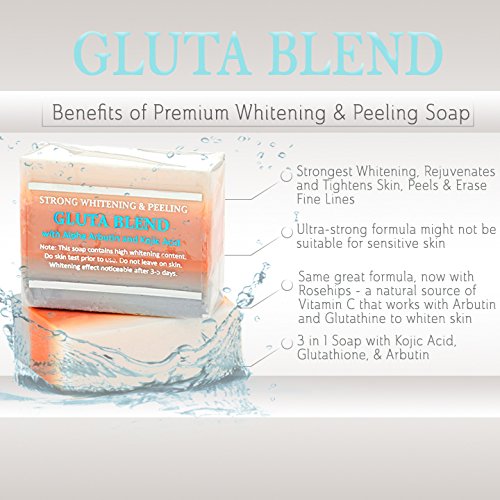 - NEW AND IMPROVED FORMULA! 3 in 1 Soap with Kojic Acid, Glutathione, & Arbutin - the strongest whitening soap available!