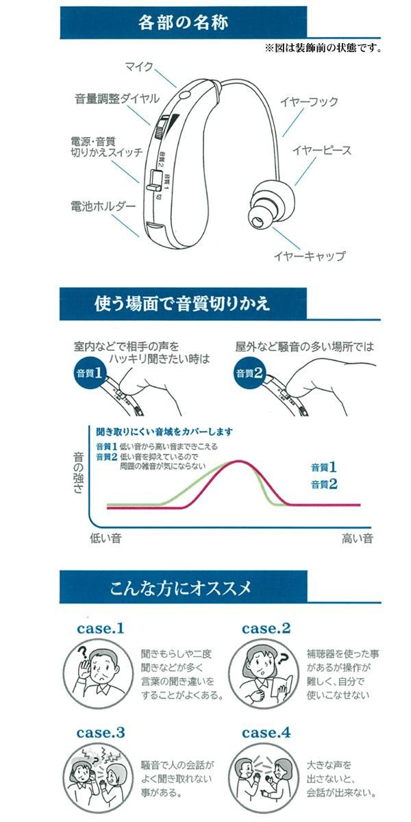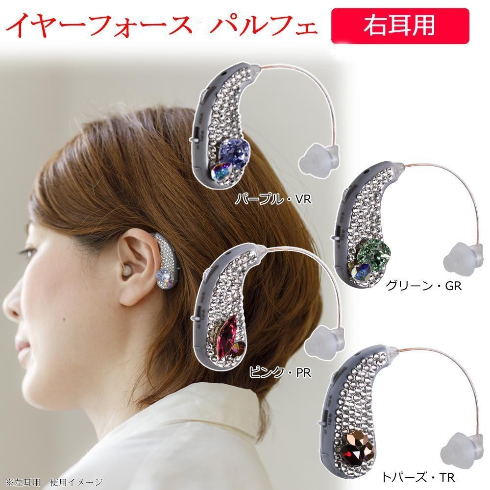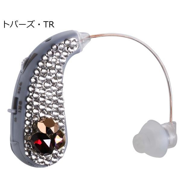 ストーン部分にスワロフスキー(R)・クリスタルを使用した集音器。気軽に使えて、ハッキリ聞こえるので、補聴器のセカンド器としてもお使いいただけます。聞こえの音質は、屋内用「ハッキリ(音質1)」と、街頭用「ソフト(音質2)」の2パターン搭載。持ち運びに便利なジュエリーポーチ付き♪ |