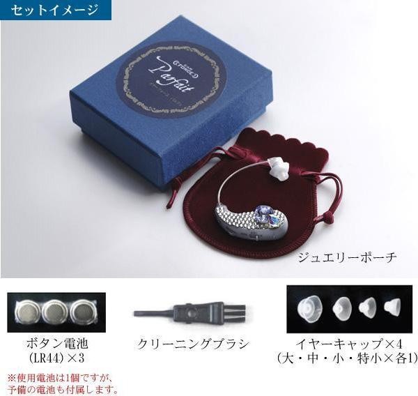 | 付属品 | ●ボタン電池(LR44)×3 ●イヤーキャップ×4(大・中・小・特小×各1) ●クリーニングブラシ ●ジュエリーポーチ ●取扱説明書兼保証書(保証期間:1年間) |