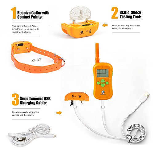 To Make Dog Training More Effective and Safe. As a pet lover, we listen to the heart-felt wished of the customers and to continuously improve our products and technology to make our pet training collar effectively ensure the safety of your pet. What we do is to establish and strengthen a harmony relationship between pet owners and their pets. Among Majority of Dog Training Collars. Why PETINCCN More Different? *Easy to operate with rapid pairing. *Hand-held remote with three training types. *Electric leakage protection and circuit protection. *Can control up to two dogs with an additional receiver. *0-100 level of customization for both the static shock and vibration Mode. *The stable signal ranges up to 1968ft, and the search function is able to detect the distance. *Two different durable and adjustable belts and two pairs of contact metal prongs fit neck sizes from 8 to 26 inches with varied fur thickness. *The rapid charging Li-poly battery offers simultaneous charging for 1000mAh remote and 300mAh receiver with power saving, and the waterproof (IPX7) receiver reducing the risk of?damaged?and?electricity?leaking. ... *Guarantee you will find a optimum option that works for your dog and curb your pet's misbehavior. Be patient, and you will get a good result! 1. Pets should be at least 6 months old. 2. Only for responsible family members. It is not a toy. 3. Please eliminate one misbehavior or teach one obedience command at a time. If you move too haste with training, your pet may become confused. 4. Be consistent. Always start at the lowest level and find the best stimulation level for your pet. 0