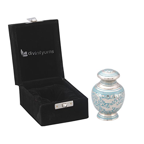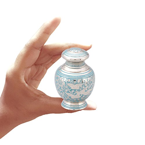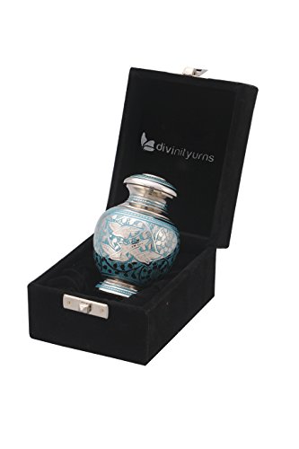Studio : Divinityurns Publisher : Divinityurns Binding : Kitchen Product Description Divinityurns's Blue Returning Home is elegant and affordable CREMATION KEEPSAKE . The urn is made from solid metal and the perfect lacquer coat to preserve its brilliance. It comes with top opening with a threaded lid. The Birds on it are uniquely engraved by hand for each urn to show beautiful detail giving the MINI URN a unique look to each finished product. Our TOKEN URNs are handcrafted uniquely by an ancient process called sand casting. This KEEPSAKE URN holds up to 3 cubic inch of cremains and approximate measure is that 1-pound weight prior to cremation equals 1 cubic inch after cremation . Dimensions: 3-inch-high x 1.5-inch diameter. All of our urns are in our warehouse and ready to ship as soon as payment is cleared. Usually we ship within one business day of receipt of payment. 100% Satisfaction Guarantee ?SATISFACTION→ We carry elegant and high quality products and we trust that you will be very happy with the quality and creative design of our products ?BEST PRICE GUARANTEE ?EASY RETURN→ If you do not like the product after arrival please contact us by contact form and report the issue within 3 days after product arrival and we will refund your money after product is shipped back to us. But, once product is used we will not accept return due to the personal nature of this product 0