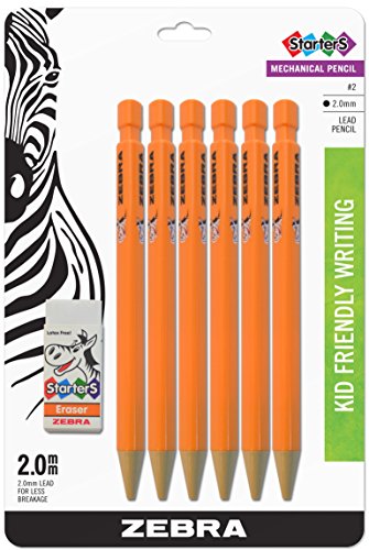 Zebra Cadoozles Starters Mechanical Pencil 2.0mm #2 + Eraser, 6-Pack (52816)