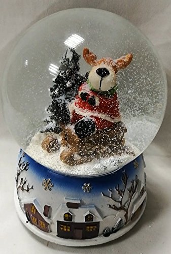 Lightahead Polyresin Christmas Reindeer Santa Snow Globe with falling Snowflakes & music playing (Reindeer)