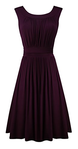 UniSweet Women's Summer Vintage Elegant Sleeveless Ruched Pleated Swing DressRegular fit, good quality fabric and comfortable for skin