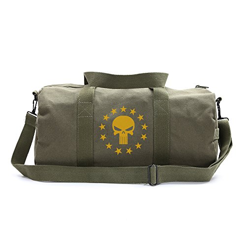 -. Brand : GrabASmile.org -. Department : unisex-adult -. Feature : 2 inch Wide Adjustable Shoulder Strap, Comfortable to Carry, Brass hardware / Enormous main compartment that can fit clothes, water bottles, car keys, wallets, and many more. / Twin carry on handles, 2 zipper pull tabs, Stonewashed 100% cotton canvas / Great For Camping, Traveling, Hunting, Backpacking, going to the gym, and many more. / Bag Manufacturer: Rothco, Bag Dimensions: 19" x 9" -. Label : GrabASmile.org -. Manufacturer : GrabASmile.org -. Model : GSD002-P -. MPN : GSD002-P -. PackageQuantity : 1 -. PartNumber : GSD002-P -. ProductGroup : Apparel -. ProductTypeName : LAGE -. Publisher : GrabASmile.org -. Size : One Size -. Studio : GrabASmile.org -. Title : The Punisher Skull and 13 Stars Canvas Duffel Sport Bags
