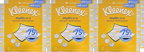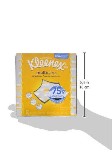 ReleaseDate : 2017-03-01 Studio : Kimberly-Clark Corp. Publisher : Kimberly-Clark Corp. Binding : Health and Beauty Product Description Introducing Kleenex multicare Facial Tissues. These disposable tissues for face, hands and everyday messes are 75% larger and 50% stronger than Kleenex Trusted Care tissue to help you care for more while using less. These large tissues are great for sniffles and sneezes, messy faces and small spills. Just use and toss. Stock up and save on Kleenex multicare Tissues with Subscribe Save, and keep tissues on hand to care for family, company and yourself during cold and flu season, allergy season, back-to-school and holidays. Keep a box in the living room, kitchen, bathroom, bedroom, car or office. Kleenex disposable facial tissues have been there for happy tears and stuffy noses since 1924. 0