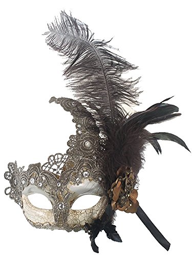 -. Brand : Hagora -. Department : womens -. Feature : High quality product, made with light weight eco-friendly materials. 100% satisfaction guarantee. / Made of Paper Mache - Accented with a Lace and Feathers / Mask Is about 7" Wide and 9" Tall with Lace Crown / Feathers Are about 13" Tall - May Vary Depending upon Feathers / One size fits most -. Model : HGM578 -. ProductGroup : Apparel -. ProductTypeName : ADULT_COSTUME -. Title : Hagora, Women's Vintage Venetian Carnival Black Feathers And Soft Lace Mask
