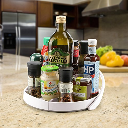 Find your necessary pantry ware items with a quick spin of Funria Good Grips 11-inch Turntable. It will maximize and organize your cabinet space. Features: *The turntable provides easy access to hard-to-reach items like spices, sauces, cleaning products or tabletop accessories. *It can be used on countertops, tabletops and in your kitchen cabinet. *With non-slip feet and a deep ledge, the turntable can hold items upright and securely right in place. *An innovative wide base design prevents the turntable from interfering with nearby items or walls as the top tray spins freely. *Backstop lifts and locks prevent items from falling into the dark corners. Sliding shelf can make sure you reach the item you want no matter how small it is from the center and don't need to worry other items falling down. Made from durable ABS plastic and top stainless steel. Two color choices: white or green, just as you like. Notice: If you are not satisfied with out turntable, or have any problem with it, please feel free to contact us. Funria offer a 24-hour customer service, and we will offer you a free replacement or a no-hassle refund. 0
