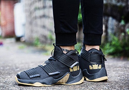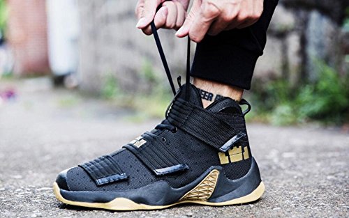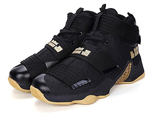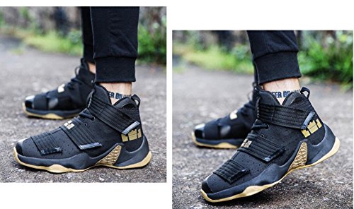 Men's Basketball Shoes For Women's Performance Sports Velcro Sneakers By JiYe,Black yellow low,Foot Length 26.5CM
