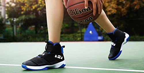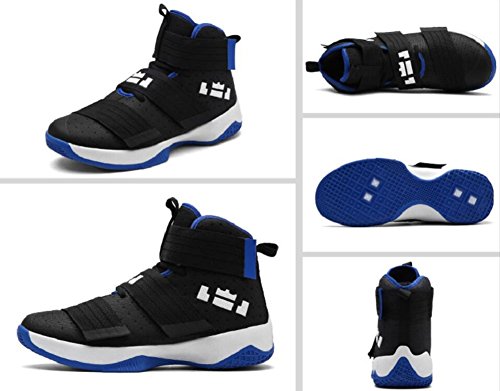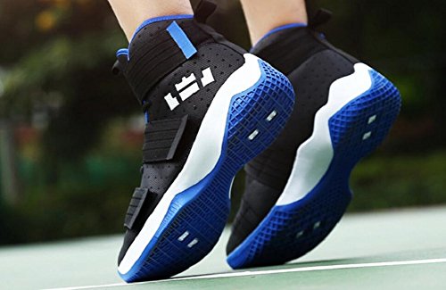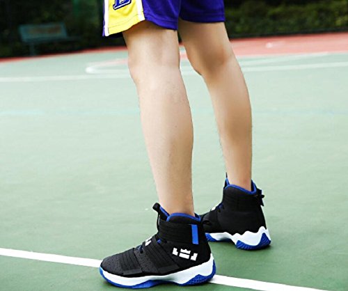 Men's Basketball Shoes For Women's Performance Sports Velcro Sneakers By JiYe,Black Blue,Foot Length 26.5CM