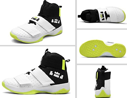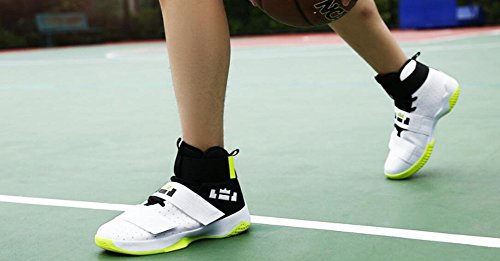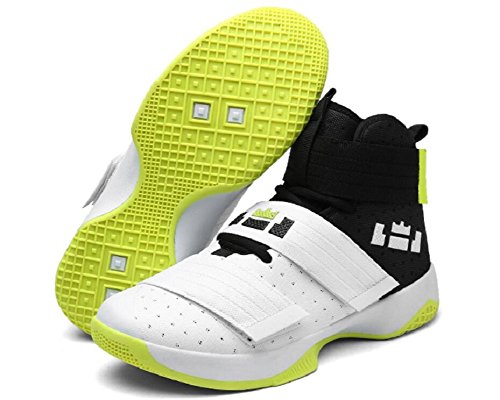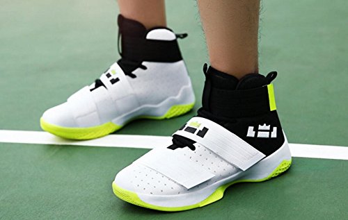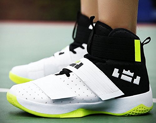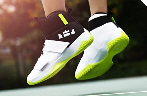 Men's Basketball Shoes For Women's Performance Sports Velcro Sneakers By JiYe,White Green,Foot Length 27.5CM