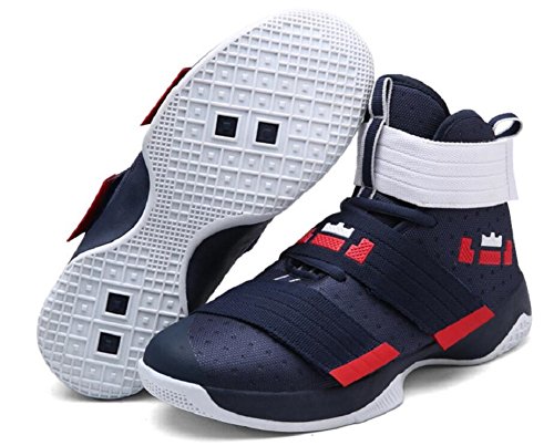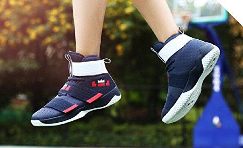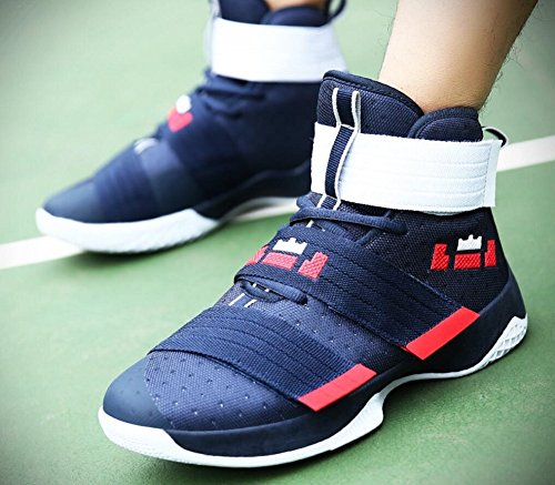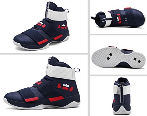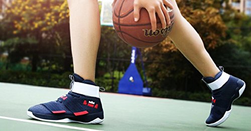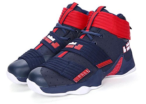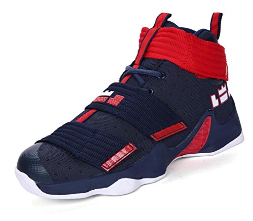Men's Basketball Shoes For Women's Performance Sports Velcro Sneakers By JiYe,Blue Red,Foot Length 26.5CM
