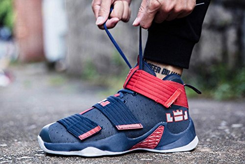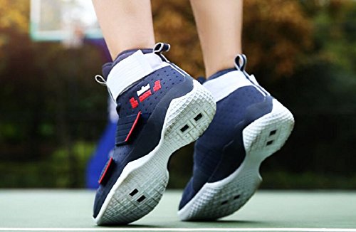 Men's Basketball Shoes For Women's Performance Sports Velcro Sneakers By JiYe,Blue Red,Foot Length 27.5CM