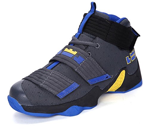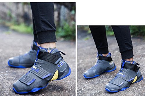 Men's Basketball Shoes For Women's Performance Sports Velcro Sneakers By JiYe,Gray blue low,Foot Length 26CM