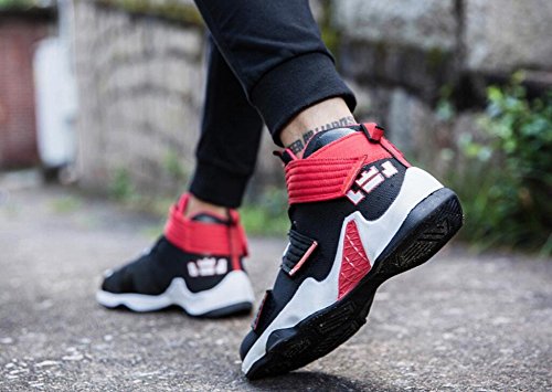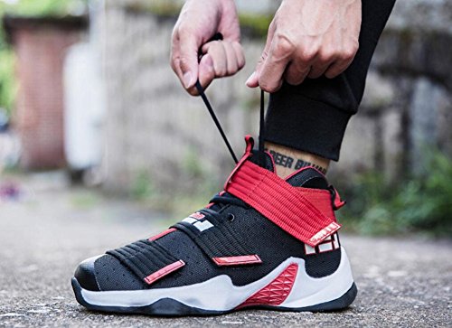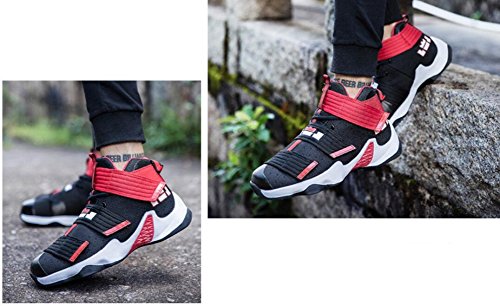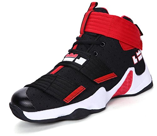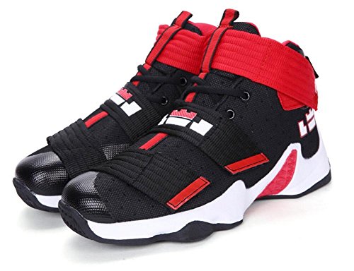 Men's Basketball Shoes For Women's Performance Sports Velcro Sneakers By JiYe,Black red low,Foot Length 27.5CM