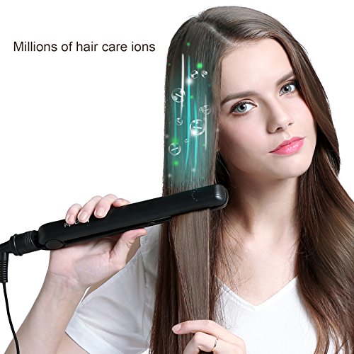 Huachi professional flat iron releases negative ions to moisten your hair and reduce hair damage and frizz. The advanced PTC ceramic heater maintains steady, high temperature, producing shape and movement in each styling session. It's normal to hear the sound of sizzle when the ionic works.