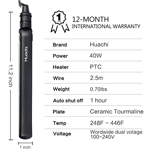 HIGH QUALITY 12-MONTH INTERNATIONAL WARRANTY- We have strongly confidence on our products. Every Huachi hair straightener includes an 12-month, worry-free Guarantee. If you have any problem or suggestion, please contact us freely, we will provide friendly support for you in 24 hr.
