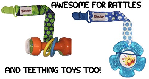 -. Title : **SALE** Pacifier Clip 4 Pack by Akeekah For Boys Unique 2 Sided Design Pacifier Holder Binky Leash with Plastic Clip Washable Perfect Baby Shower Gift