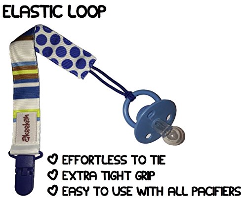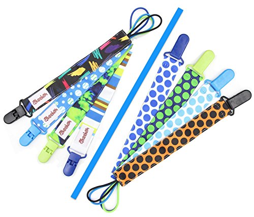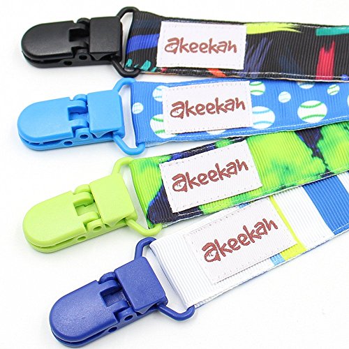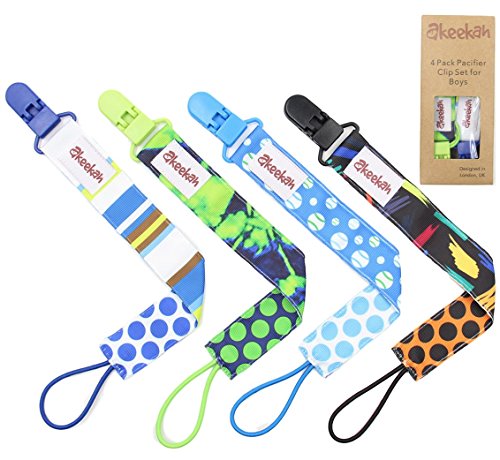 -. Feature : AWESOME DESIGNS: Our pacifier clips are double sided meaning you are effectively getting 8 different designs! We have chosen our patterns very carefully- other packs tend to have either random patterns on each clip, or the exact same pattern in different colors. We have combined the two, so that on one side you have zigzags/chevron in various colours, and on the other side you have a different dazzling design on each clip! / MULTI FUNCTIONAL: Our pacifier clips are made with an elastic loop so they can be easily tied round everything from all shapes of pacifiers made with all different materials, to teething toys. Our pacifier holders also come in a custom designed gift box, making them an excellent baby shower gift! / SAFETY AND EASE: We use BPA free plastic clips rather than metal clips which prevents damage to clothes, as well as preventing your baby from chewing on potentially toxic metal. It also means that the clips a lot easier for the parent to use, and harder for the child to remove due to the butterfly mechanism, allowing for one handed use. Our binky clips are fully machine washable and are Phthalate, Lead, Nickel and Latex Free! / INCREDIBLE QUALITY: We use high quality grosgrain ribbon, made from 100% polyester rather than cotton, which prevents damage in the washing machine. These high quality materials also show the full richness of the colors maximizing style and stimulation of the baby's brain! The high quality stitching, elastic loop and plastic clip creates ultra high strength and prevents the leash from breaking. / CUSTOMER SERVICE: Customer satisfaction means the world to us at Akeekah- we are on hand 24/7 to answer your queries, and we always do our absolute best to ensure you are happy with the product! However if not, you can return it with no questions asked for a full refund. Furthermore, we provide a 90 day warranty!
