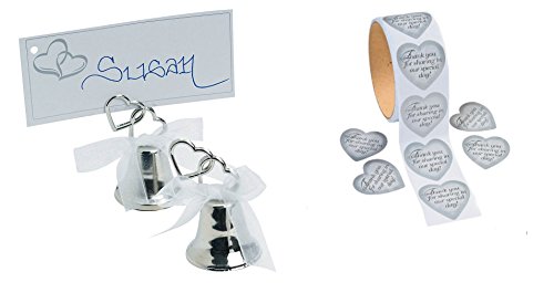- Includes 25 double heart silvertone metal place card holder bells each measures 2 inches