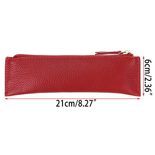 - PENCIL BAGS WITH ZIPPER: This pencil case is made of 100% genuine leather and has a good texture, soft leather is easy to clean, with zipper closure design which ensure your items secure and help you access them quickly.
