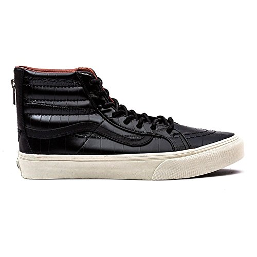 The Cheetah Suede Sk8-Hi Slim Zip combines a slimmed down version of the legendary lace-up high top with a zipper entry at the heel, suede uppers, signature waffle rubber outsoles, and padded collar and heel counters for support and flexibility.Feature