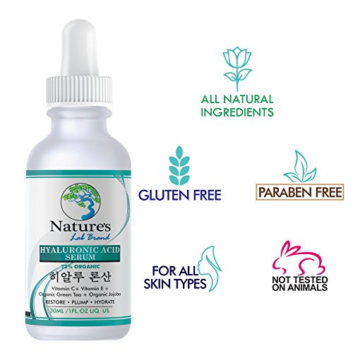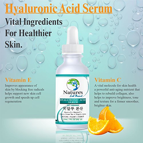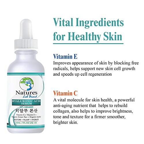 -. Title : Hyaluronic Acid Serum for Face + Vitamin C Vitamin E - Advanced Korean Beauty formula Anti Aging Anti Wrinkle for hydration Natural Organic Vegan Paraben free Best Natures Lab Brand cruelty free