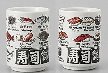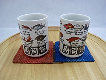 -. Feature : Sushi and fish names are printed in Japanese(Kanji) and English. set of 2pcs. Gift box / Sushi Yunomi(tea cup) is just in size to enjoy hot tea in everyday use. / Japanese ceramic, Mino Yaki(Ware), Made in Japan. / Size: 2.8"dia, H4.1" ,Capacity: 9.7oz., Weight:9.7oz.(1pc), These are in paper box. / Microwave and dishwasher available,Lead is not included.