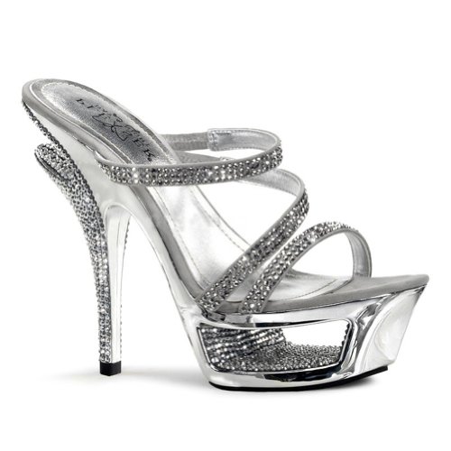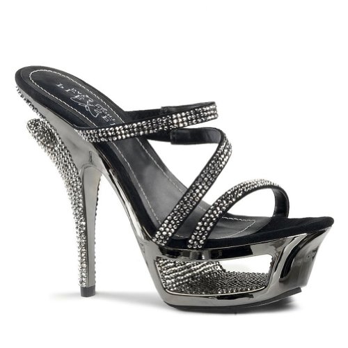 Womens Rhinestone Sandals Cut Out Platforms Black Bronze Silver 5 1/2 Inch Heel