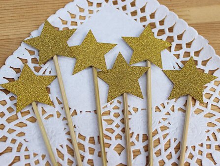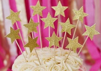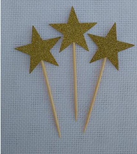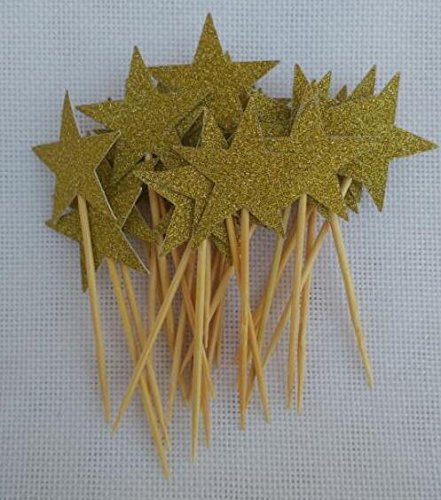 25 Pack Mini Glitter Gold Star Cupcake Toppers Birthday Star Party Baby Shower Cupcake Toppers