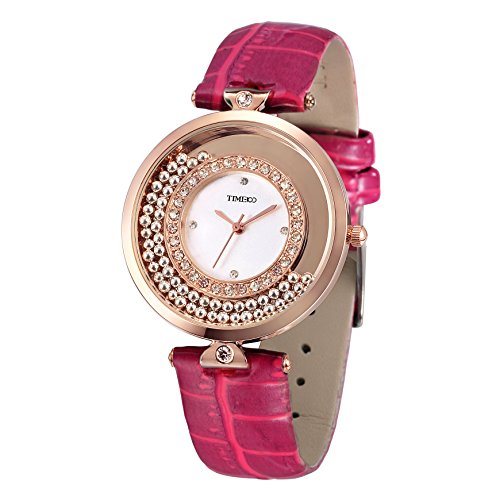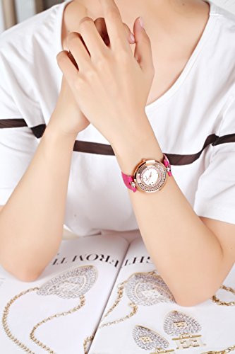 -. Title : Time100 Fashion Diamond Genuine Leather Strap Ladies Quartz Watch #W50446L.04A
